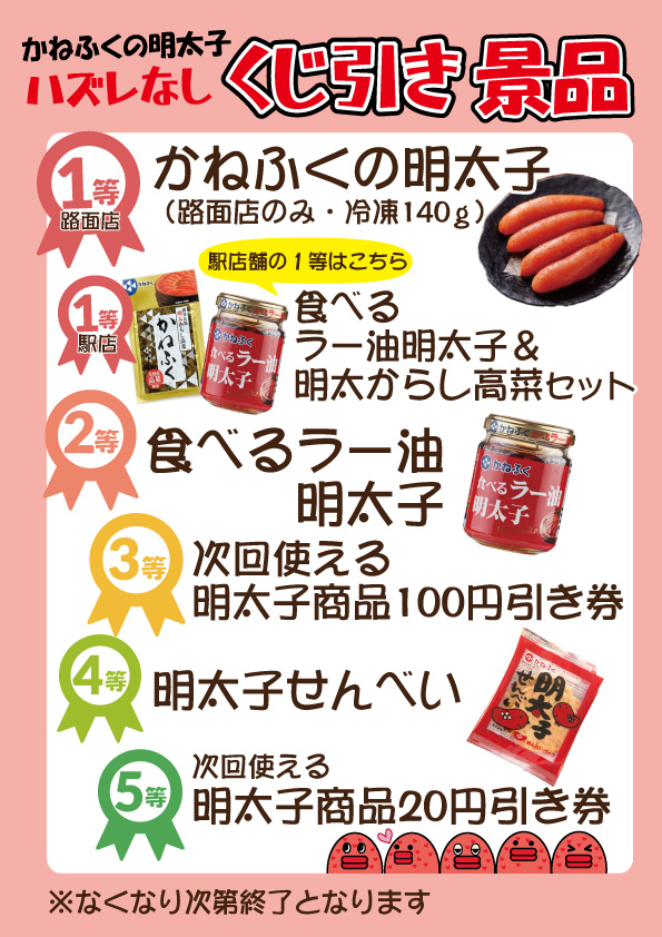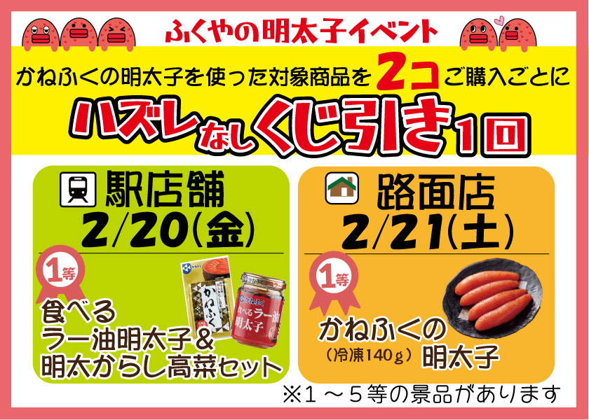 2/20(金)駅店・2/21(土)路面店 明太子くじ引きキャンペーン開催!